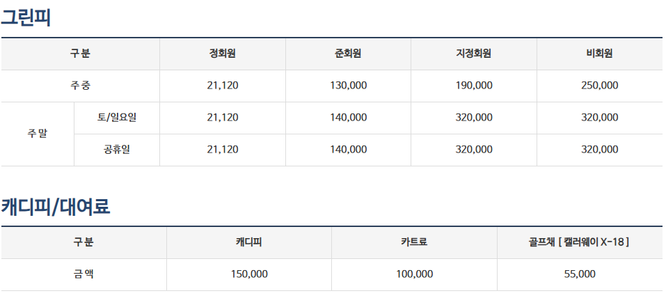 -준회원 : 주중13만원 / 주말14만원