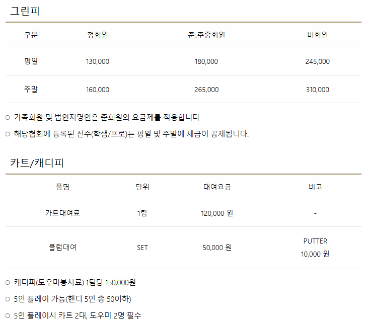 -정회원 : 주중15만원 / 주말16만원
