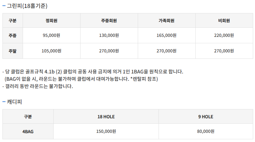 -정회원 : 주중9.5만원 / 주말10.5만원