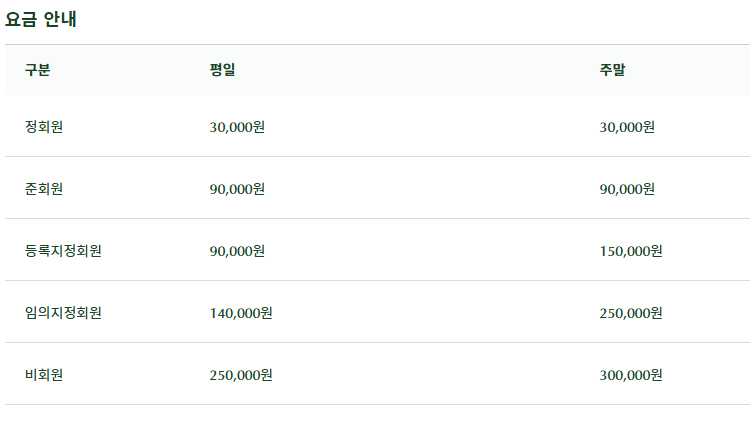 -정회원 : 주중/주말 3만원