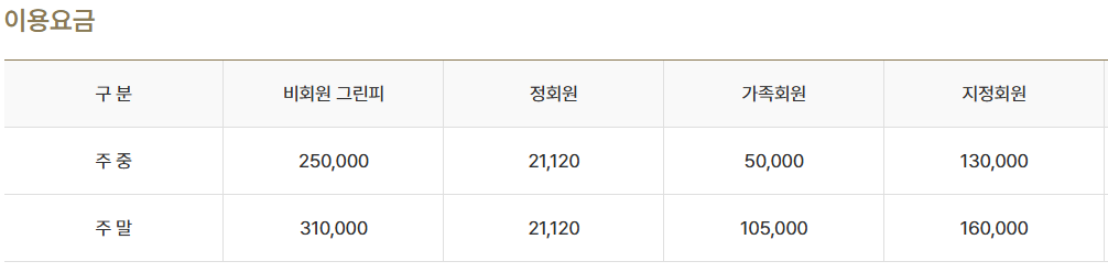 -가족회원 : 주중5만원 / 주말10.5만원