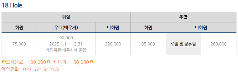 -정회원 : 주중7.5만원 / 주말8.5만원